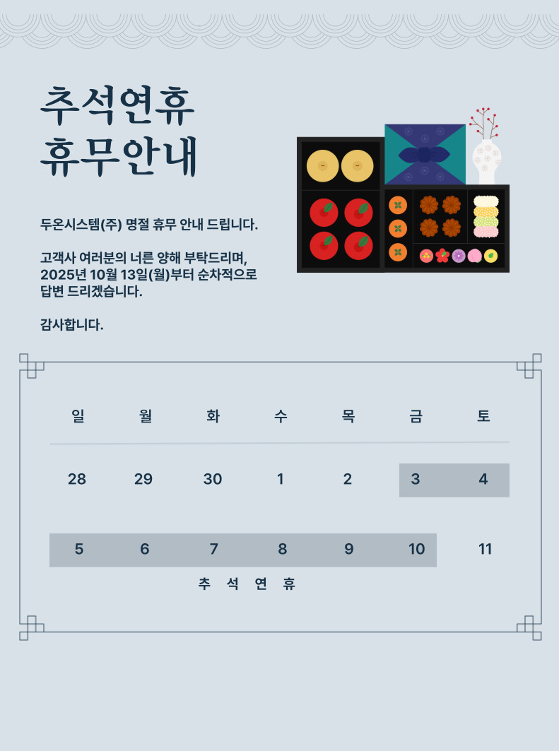 두온시스템(주) 명절 휴무 안내 드립니다.